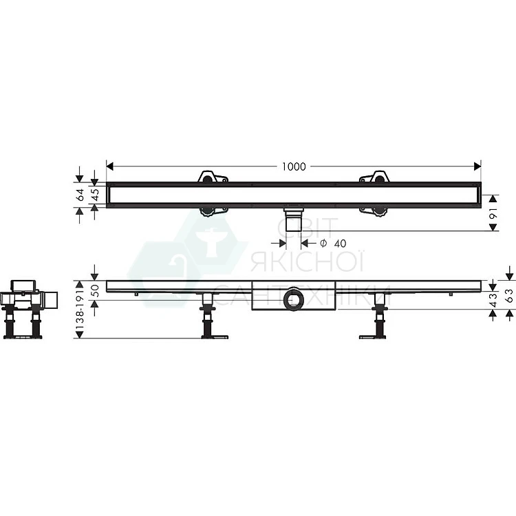 Комплект душового трапу плитковий для плоского монтажу Hansgrohe RainDrain Compact 56171000 1000 мм