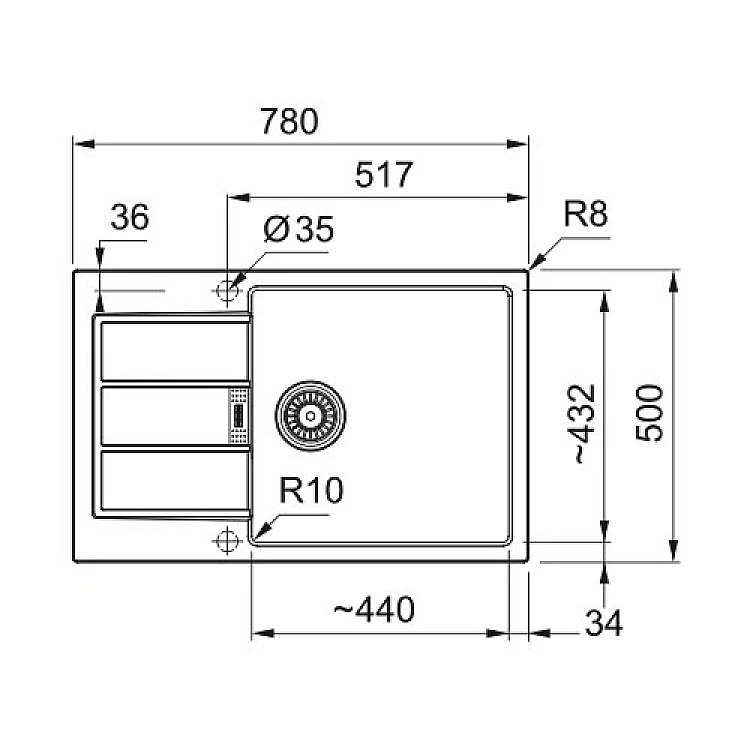 Мийка має оборотну конструкцію, тому в залежності від потреб та специфіки конструкції кухні, мийка може мати правостороннє або лівостороннє розміщення крила.