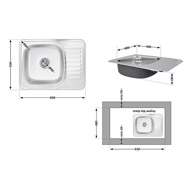 Кухонна мийка Lidz 6550 Satin LIDZ6350SAT8