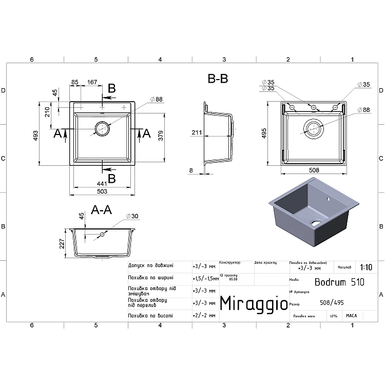 Характеристики - Кухонна мийка MIRAGGIO BODRUM 510 терра