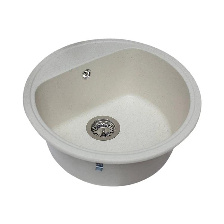 Кругла кухонна мийка MALIBU має однорідну текстуру та колір - жасмин. Кількість чаш - 1. Тип установки - врізний. Матеріал мийки - Mirastone - не всочує запахи, відштовхує жир та забруднення, а також не змінює кольору в процесі експлуатації.