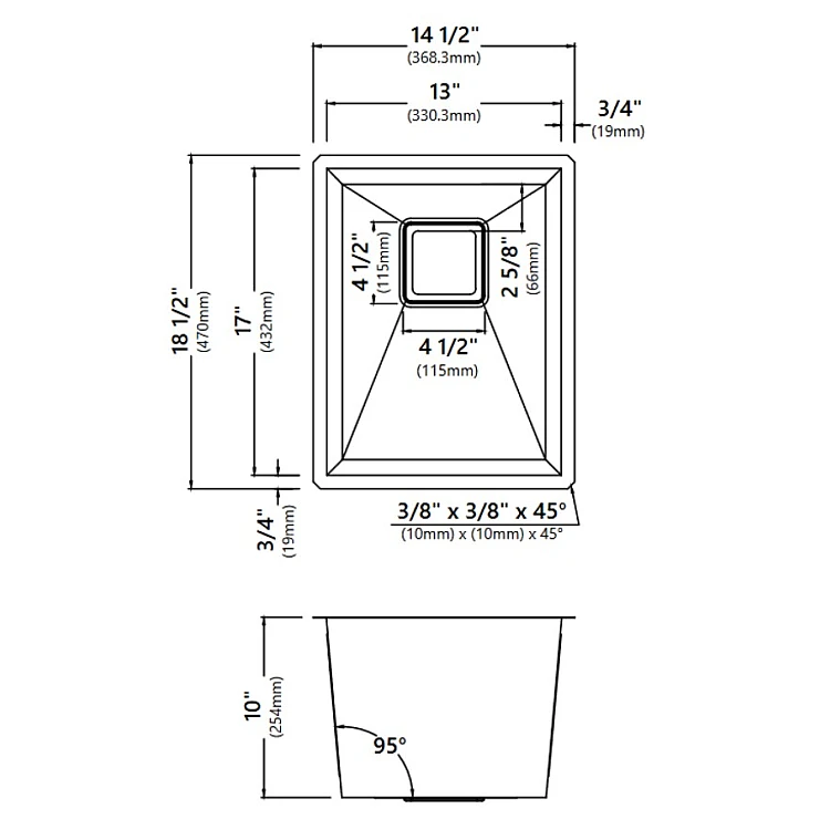 Глибока чаша (254 мм) з кутами нульового радіуса