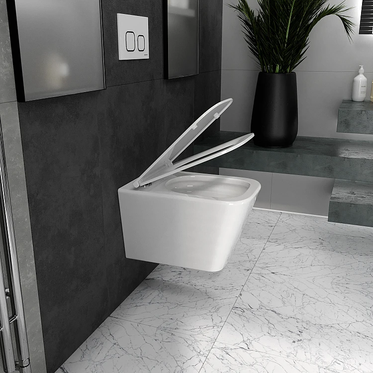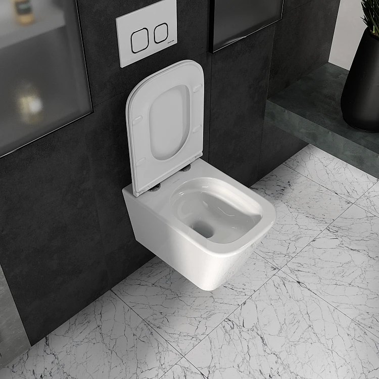 Підвісний унітаз Kvadro з сидінням Soft-close і системою змиву Tornado 3 поєднує сучасний квадратний дизайн, передові технології та високоякісні матеріали. Виготовлений з сантехнічного фарфору преміум-класу, унітаз має міцне і стійке до зношування покриття, яке зберігає свою білосніжність і гладкість протягом тривалого часу. Система змиву Tornado 3 забезпечує потужний і ефективний потік води, гарантує бездоганну гігієнічність і знижує витрати води. Сидіння з механізмом Soft-close забезпечує плавне і безшумне закриття, підвищуючи комфорт у користуванні. Квадратний дизайн додає сучасного мінімалістичного вигляду, а підвісна конструкція полегшує прибирання, забезпечуючи легкий доступ до підлоги. Унітаз Kvadro стане ідеальним вибором для стильних інтер’єрів, де цінуються чіткі форми, функціональність і якість.