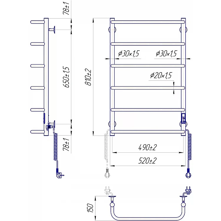 Електрична рушникосушка Mario Стандарт HP-I 800x530/150 mar_196
