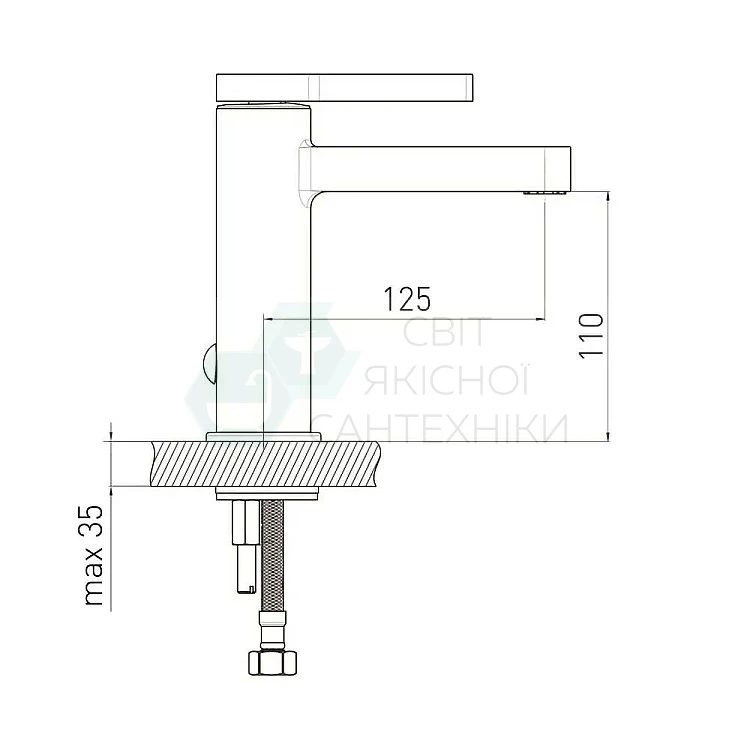 Комплектація: змішувач, комплект кріплення на шпильці, шлаги підведення води 600 мм, G1/2 - 2 шт., Сервісний ключ (ключ для викрутки аератора)