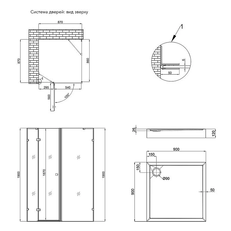 Душова кабіна Qtap Capricorn CRM1099SC6 Clear 202x90 з піддоном Tern 309912C з сифоном