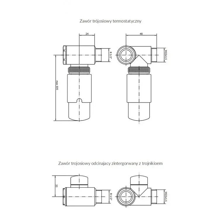 Комплект трьохосьових термостатичних вентилів Terma Integra All in One призначений для підключення рушникосушок та радіаторів до системи водяного опалення. Ліве виконання забезпечує правильний монтаж при відповідному розташуванні підвідних труб.