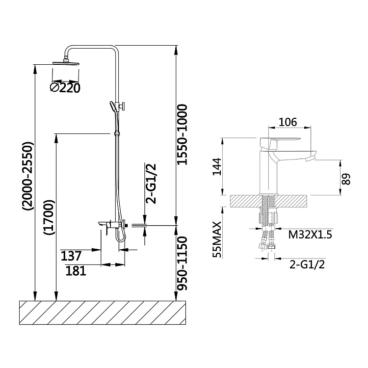 Набір змішувачів для ванни 2в1 Lidz Latwa хром