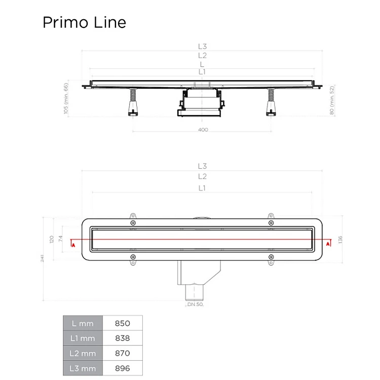 Характеристики - Душовий трап Pestan Confluo Primo Line 850 мм 13702505