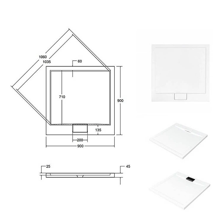 Опис товару - Душовий піддон квадратний BESCO Axim Stone Effect 90x90 + сифон