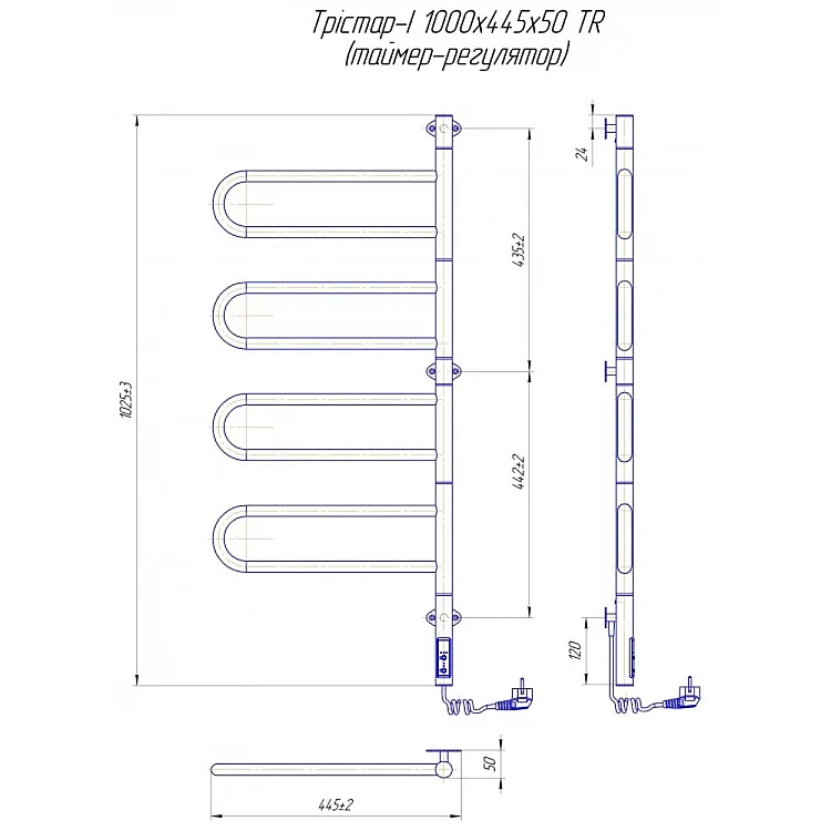 Електрична рушникосушка Mario Тристар-I 1000x445x50 mar_208
