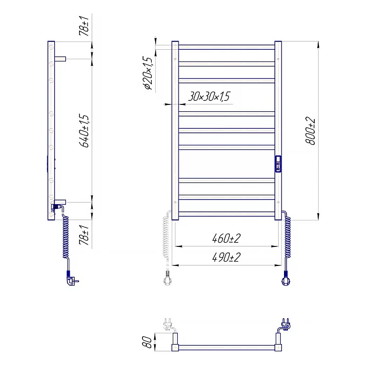 Електрична рушникосушка Mario Преміум Класік-I 800x500/80 mar_214
