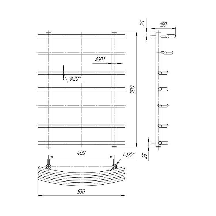 Характеристики - Водяна рушникосушка Mario Маріо 700x530/400 mar_27