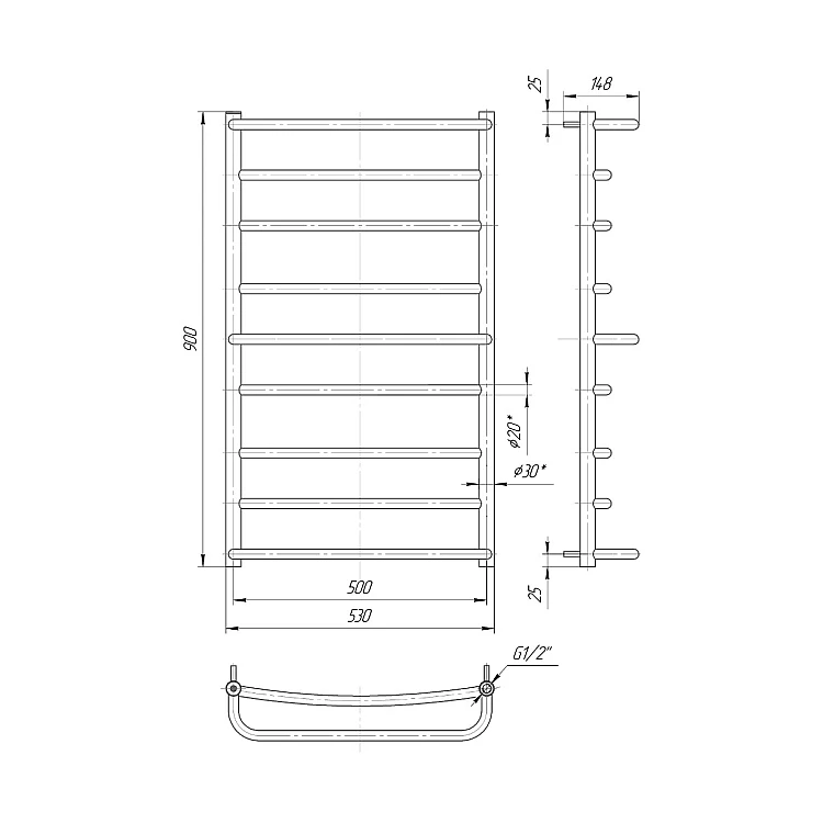 Характеристики - Водяна рушникосушка Mario Люкс 900x530/500 mar_24