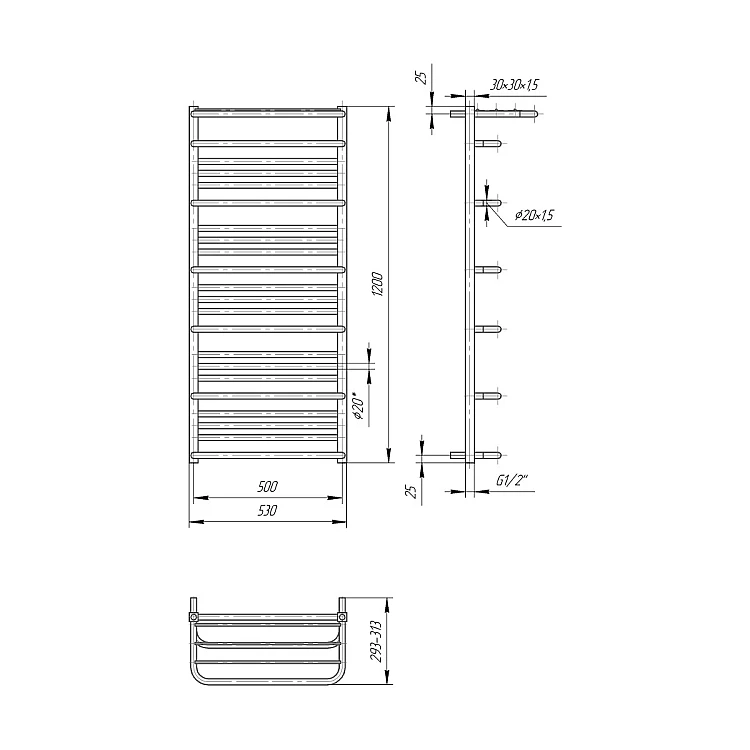 Характеристики - Водяна рушникосушка Mario Преміум Люксор 1200x530/500 mar_115
