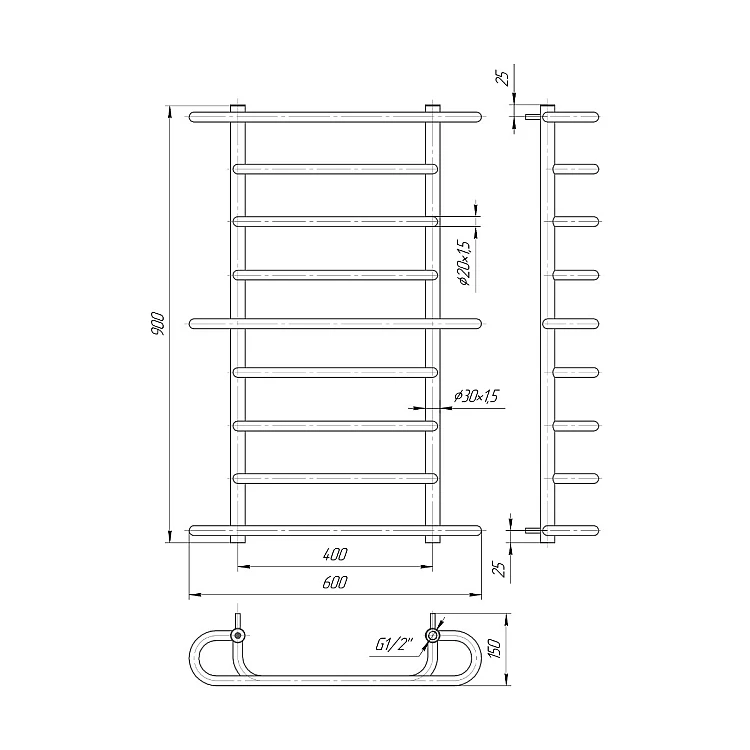 Характеристики - Водяна рушникосушка Mario Верона 900x600/400 mar_06