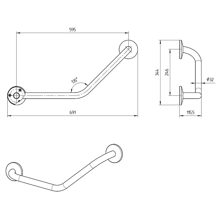 Поручень Laris пристінний 135° для санвузлів 42002014