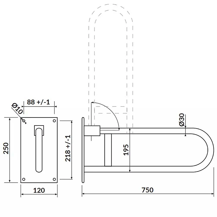 Поручень настінний Cersanit ETIUDA 75 см рухомий