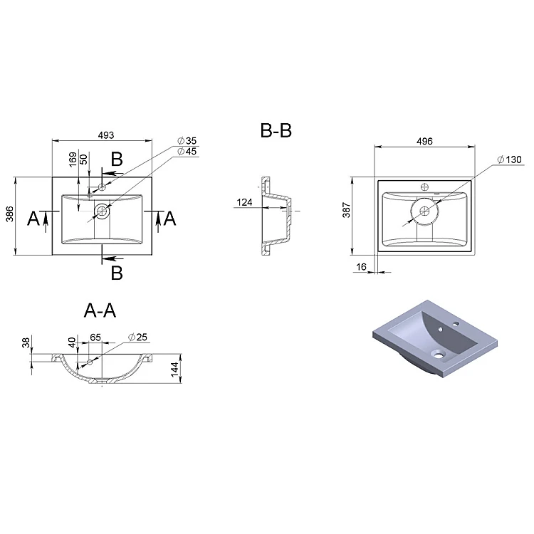 Умивальник Fancy Marble Jody 500 1605101 з литого каменю