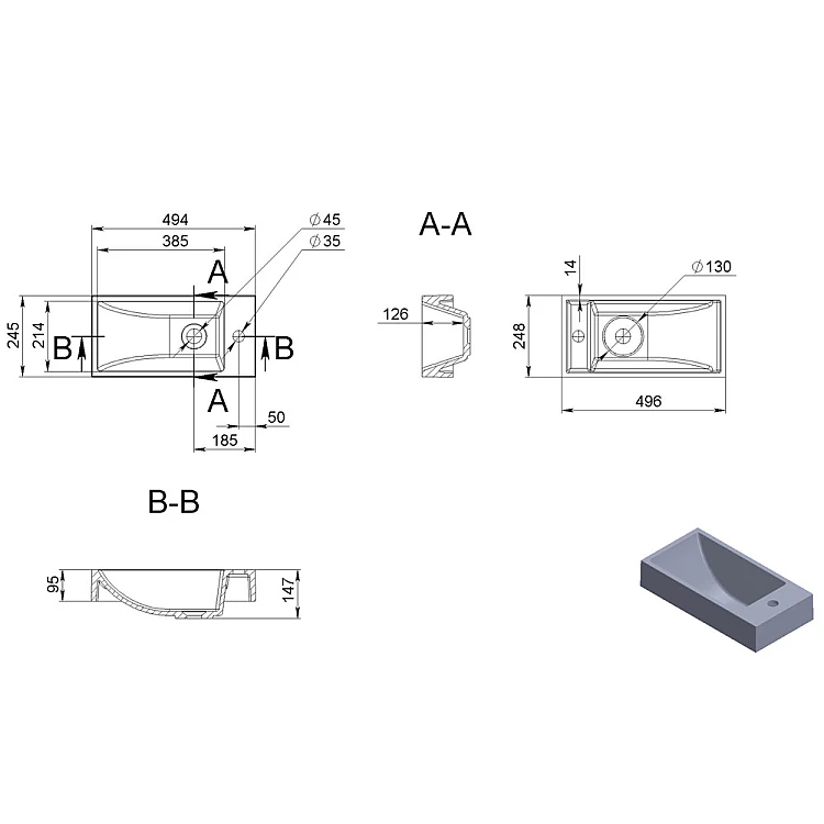 Умивальник Fancy Marble Martina 500 5305101 з литого каменю