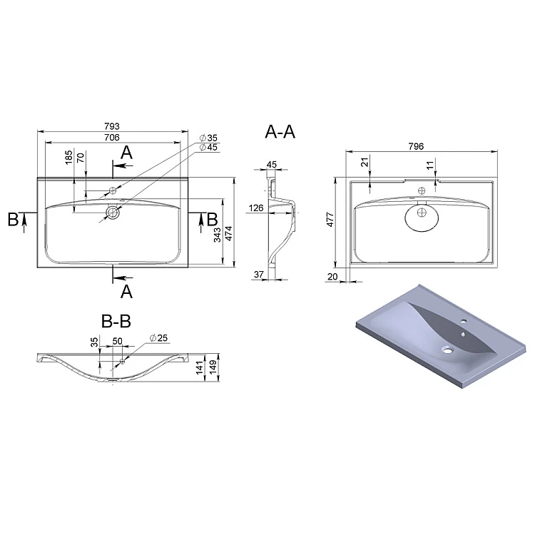 Отримайте AI поради по Умивальник Fancy Marble Yonna 800 0608101 з литого каменю