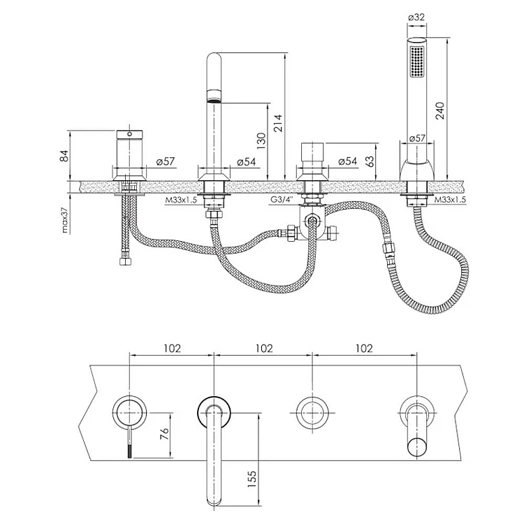 на борт ванны (врезной)