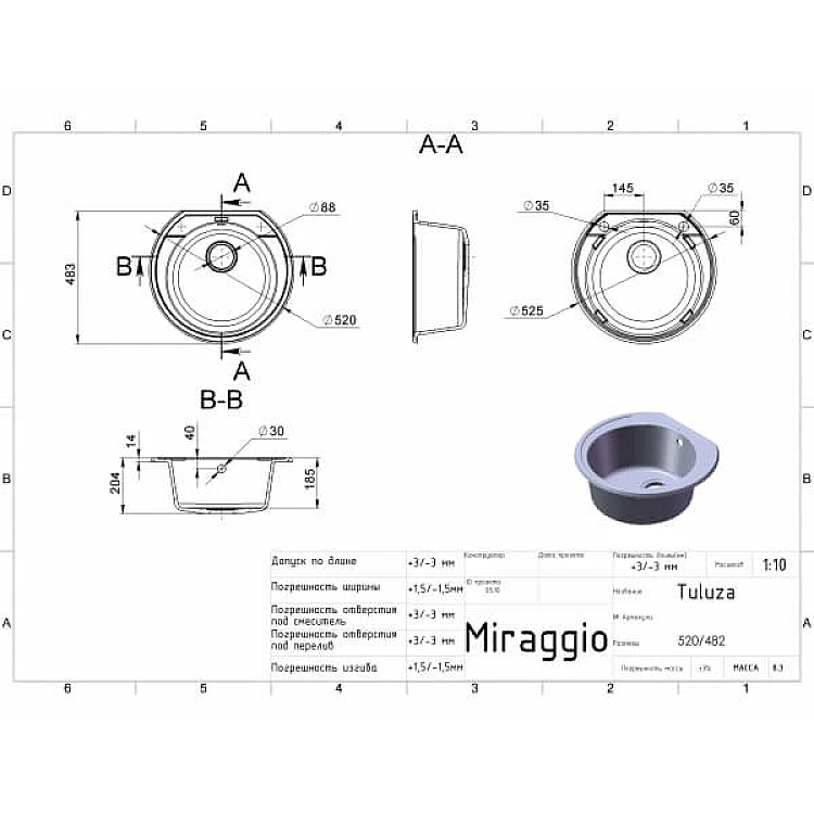 Черная кухонная мойка Miraggio (Fancy Marble) Tuluza из гранита