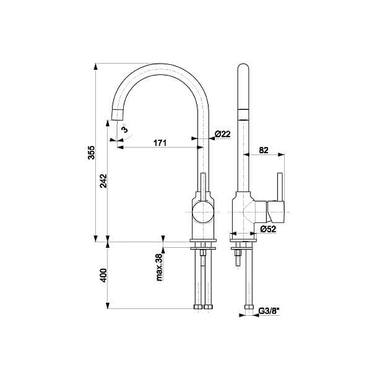Простая и классическая форма излива обеспечивает удобство использования смесителя. Подходящая высота позволяет легко наполнять даже большие кастрюли.