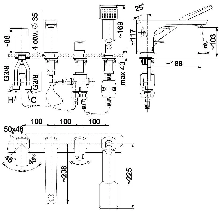 на борт ванны (врезной)