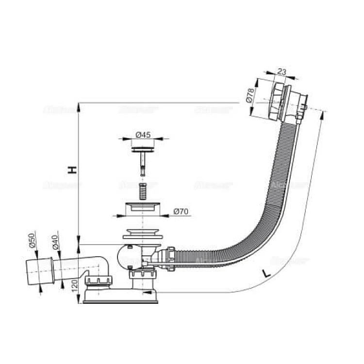 Описание товара - Cифон для ванны Alca Plast A55K