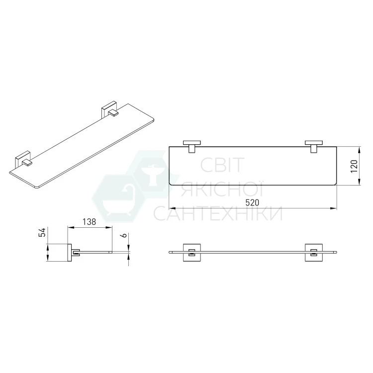 Полка стеклянная VOLLE CUADRO 2536.270101 хром