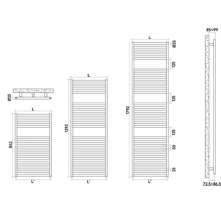 Описание товара - Дизайнерский полотенцесушитель Irsap Stile 842x481