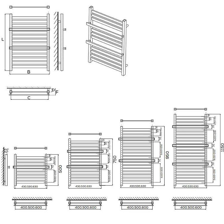 Конструкция: - вертикальные квадратные коллекторы сечением 30х30 мм