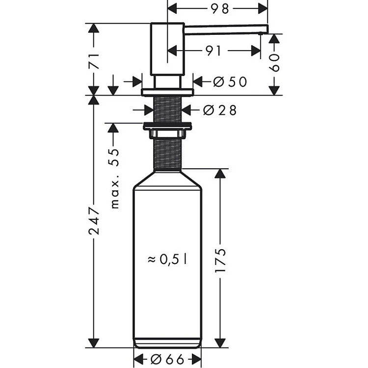 Дозатор кухонный A41 для моющего средства врезной Matt Black Hansgrohe 40438670