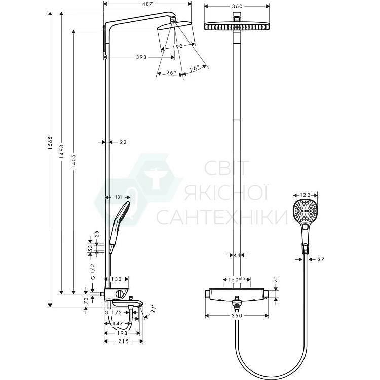 Характеристики - Душевая система HANSGROHE Raindance Select Showerpipe 27113000