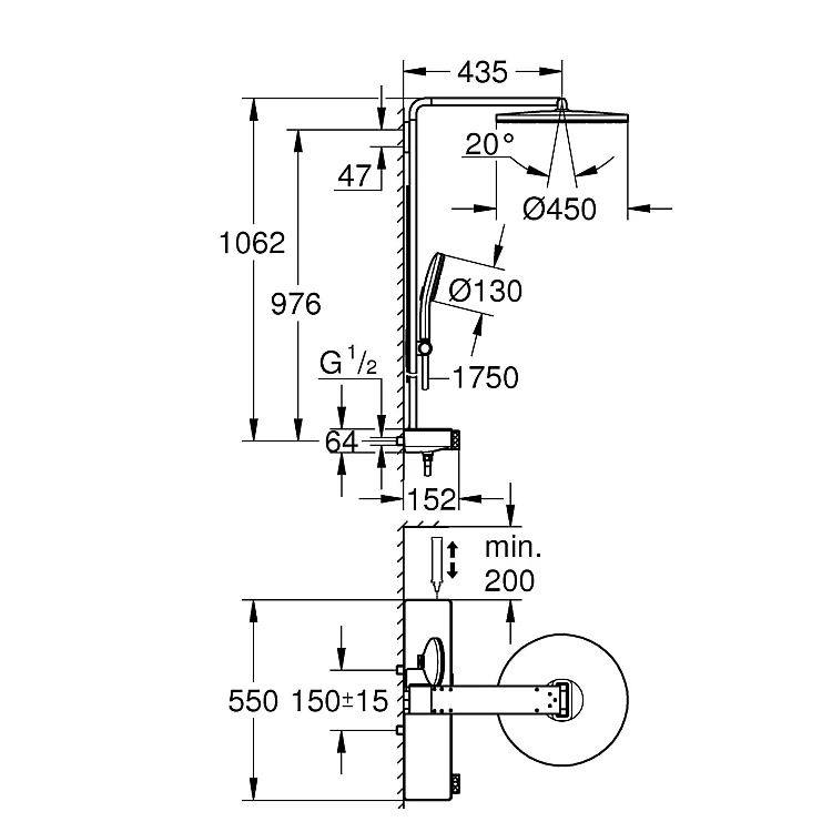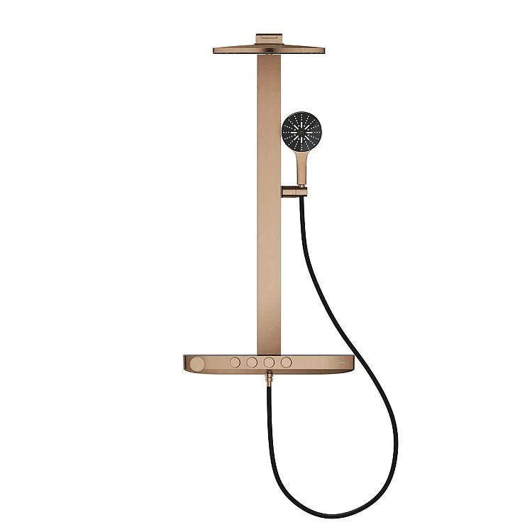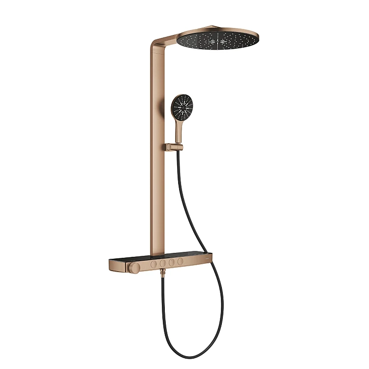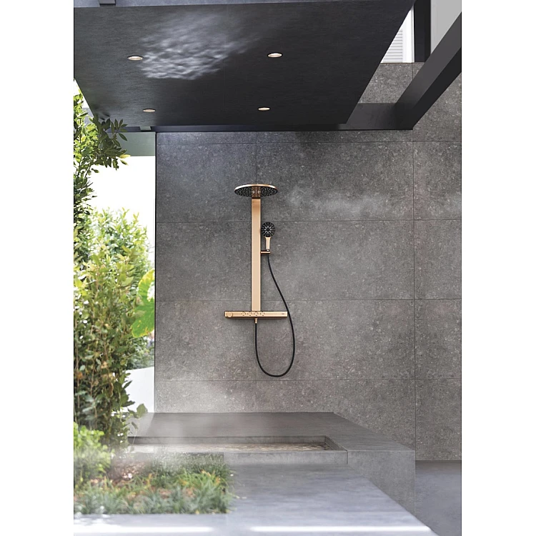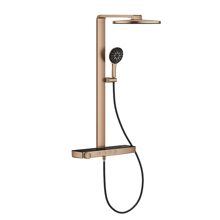 Получите AI советы по Душевая система с термостатом GROHE Rainshower Aqua Pure, настенный монтаж, золото брашированное, 101680DL00