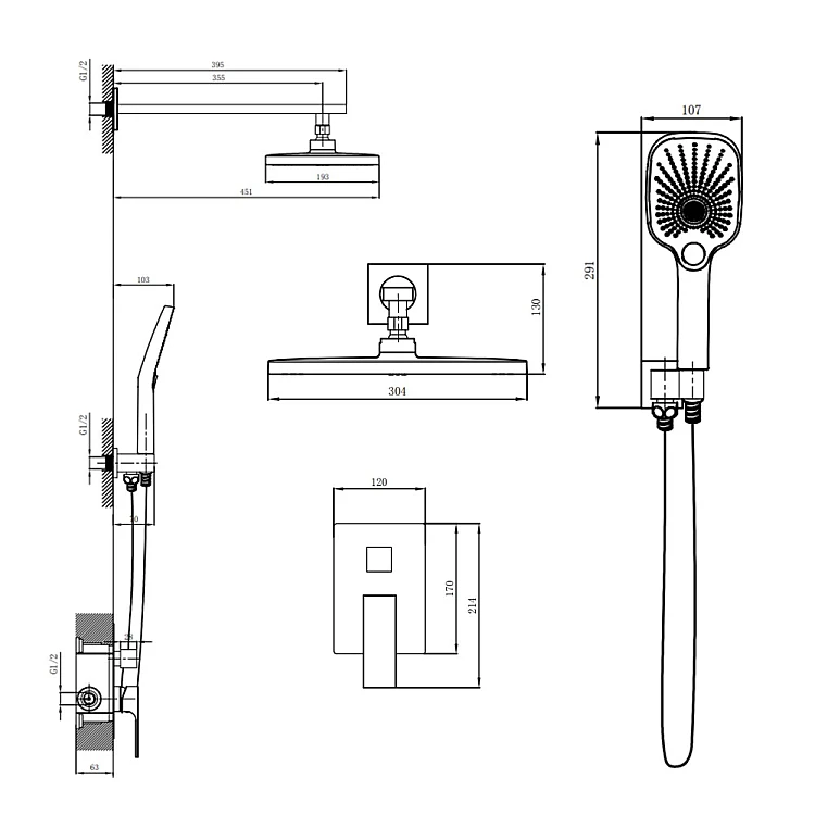 Получите AI советы по Душевая система для душа Qtap Gemini скрытого монтажа на два потребителя QTGEM113GMB45698 Gunmetal Black PVD