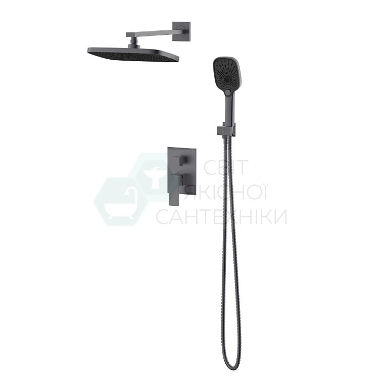Душевая система для душа Qtap Gemini скрытого монтажа на два потребителя QTGEM113GMB45698 Gunmetal Black PVD
