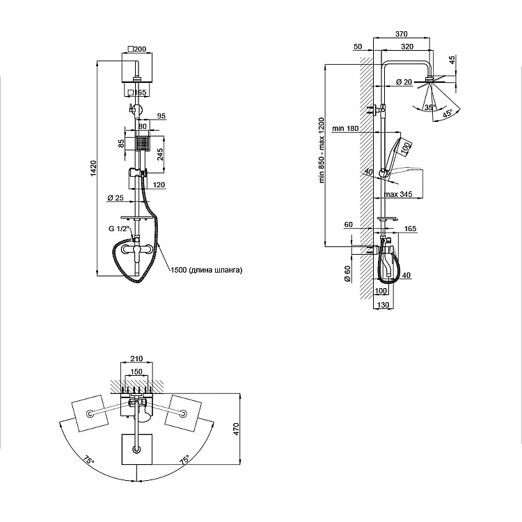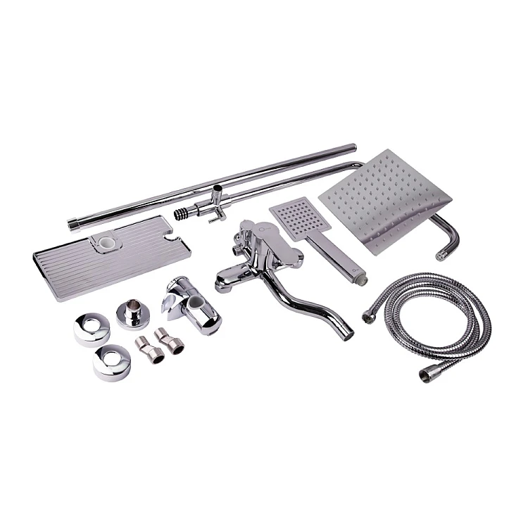 Душевая система универсальная Qtap Plava на три потребителя (с изливом) c полочкой QT1005CRM Chrome