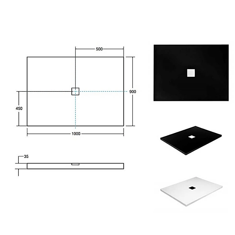 Душевой поддон прямоугольный BESCO NOX Ultraslim 100x90x3.5 черный