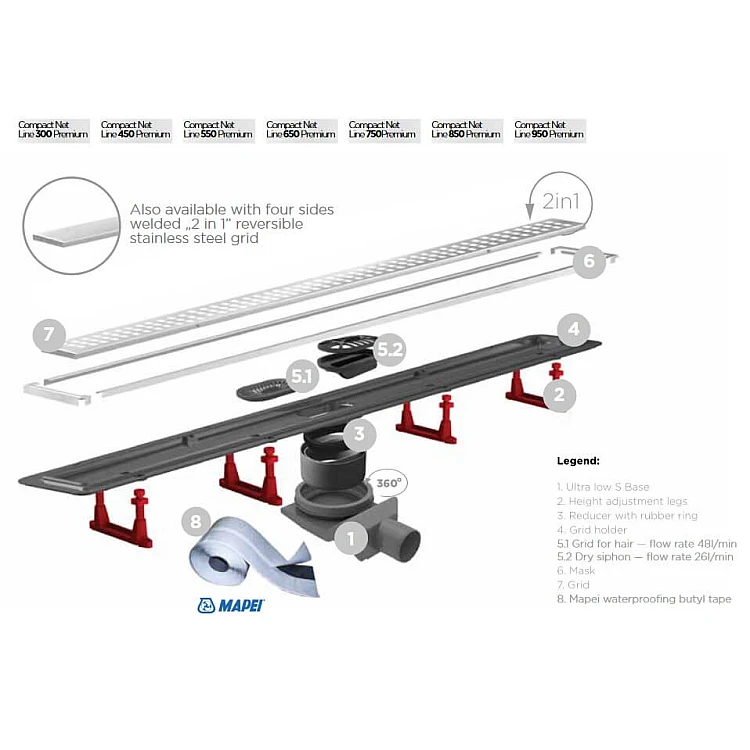 Характеристики - Душевой трап Pestan Confluo Primo Compact Net Line 850 мм 13702519