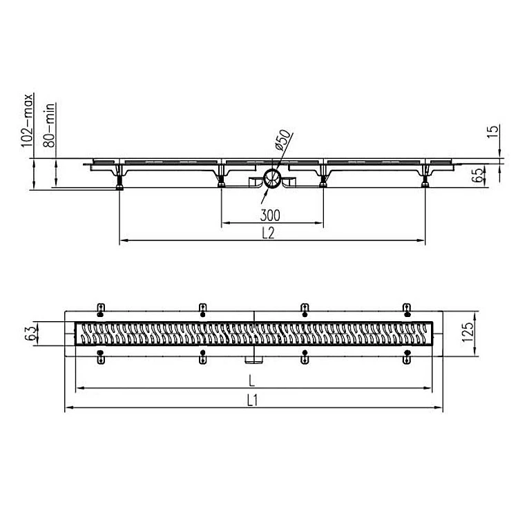 Душевой трап с решеткой "Крапли" MCH CH 1050/50 DN 1 1050 мм