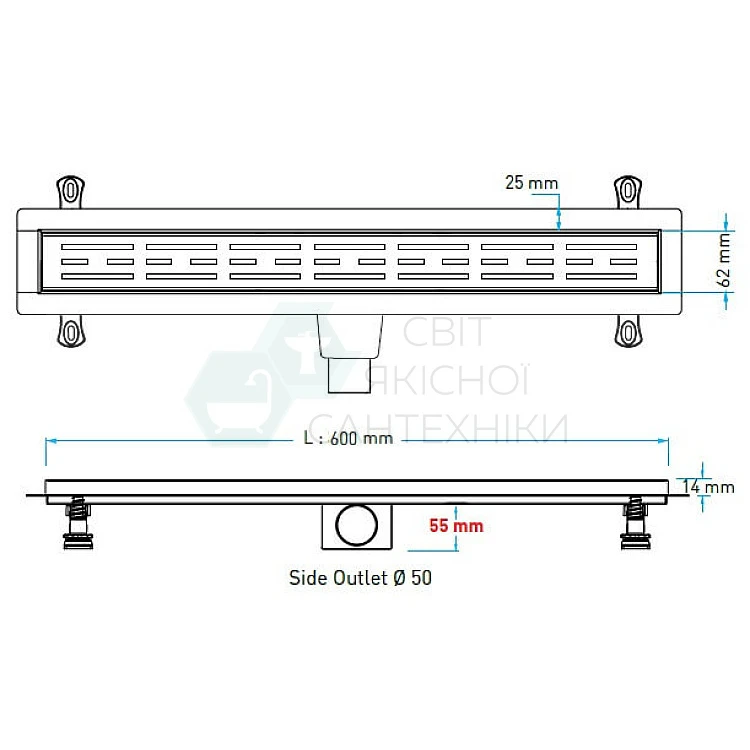 Описание товара - Душевой трап Valtemo Starline Base VLD-562320 600 мм, 50 боковой выход