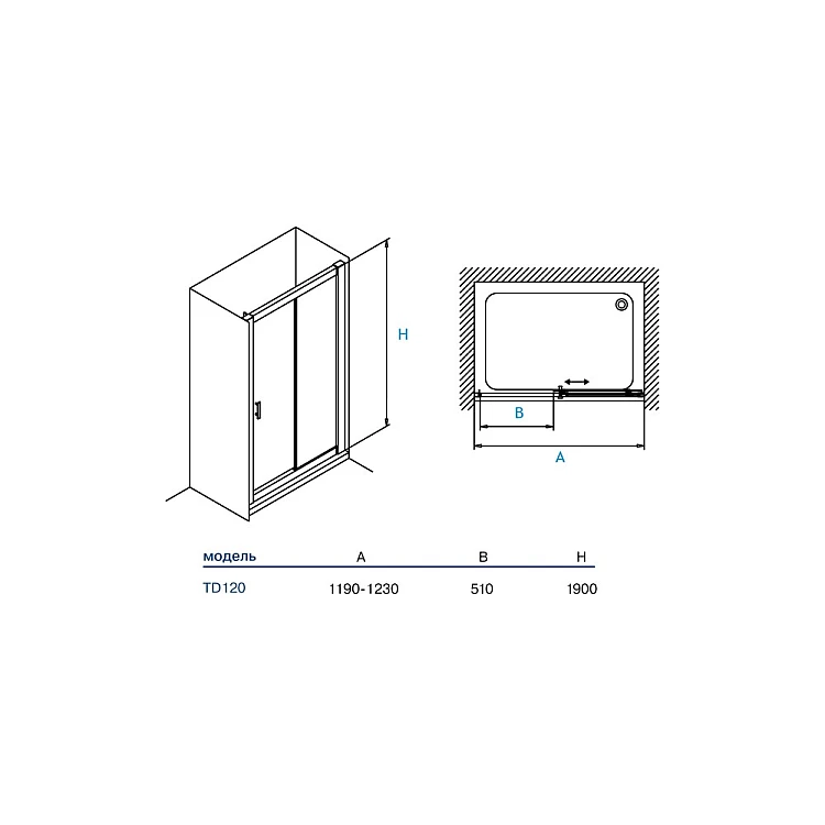 Душевые двери Koller Pool TREND TD120C 120x190 стекло прозрачное