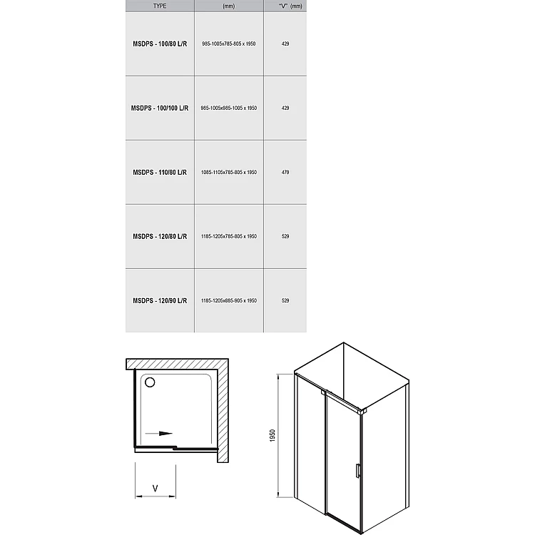 Душевая кабина Matrix MSDPS-110/80 L белый TRANSPARENT