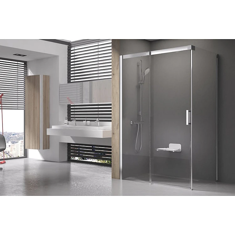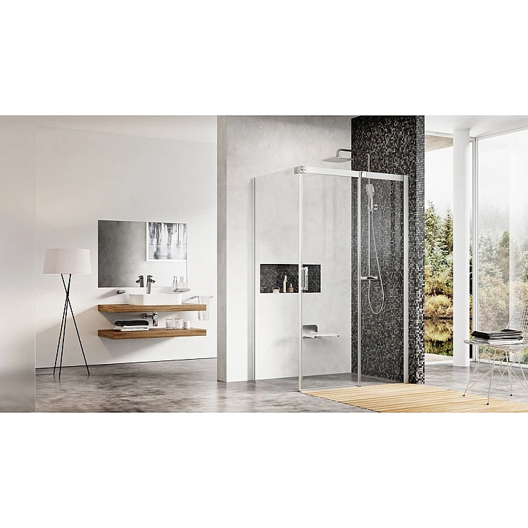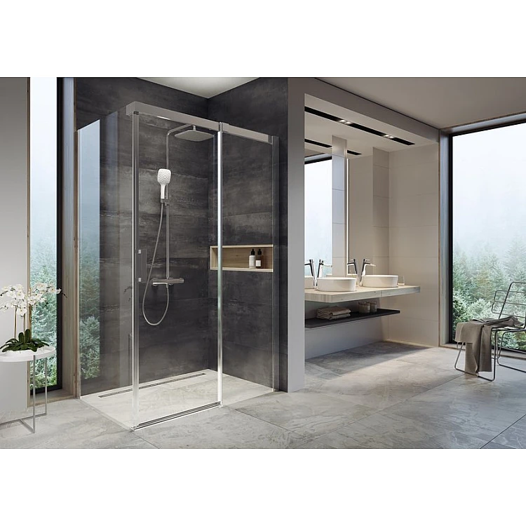 Роскошная раздвижная кабина создана с помощью комбинации душевой двери и неподвижной стенки. Выберите требуемые части в зависимости от конкретных размеров Вашей ванной комнаты и создайте максимально удобное душевое пространство. Уникальный дизайн с доминирующими массивными верхним и боковым профилями.