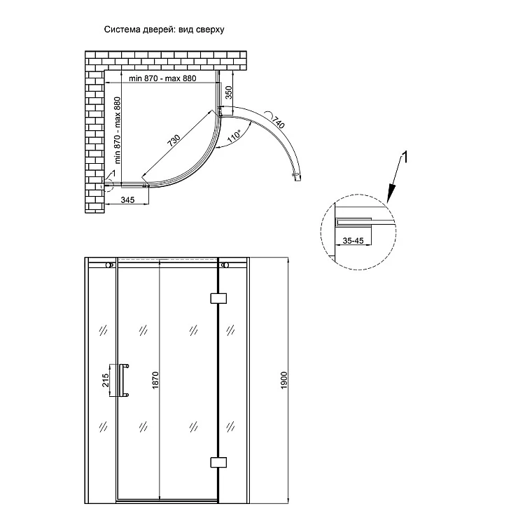 с открывающей дверью, без поддонa