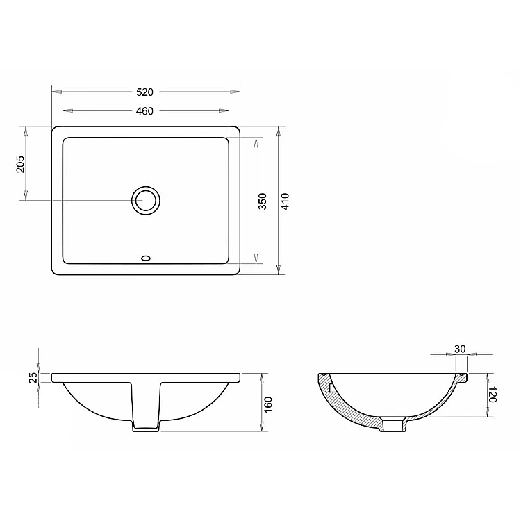 Умывальник прямоугольный 52x41 IMPRESE