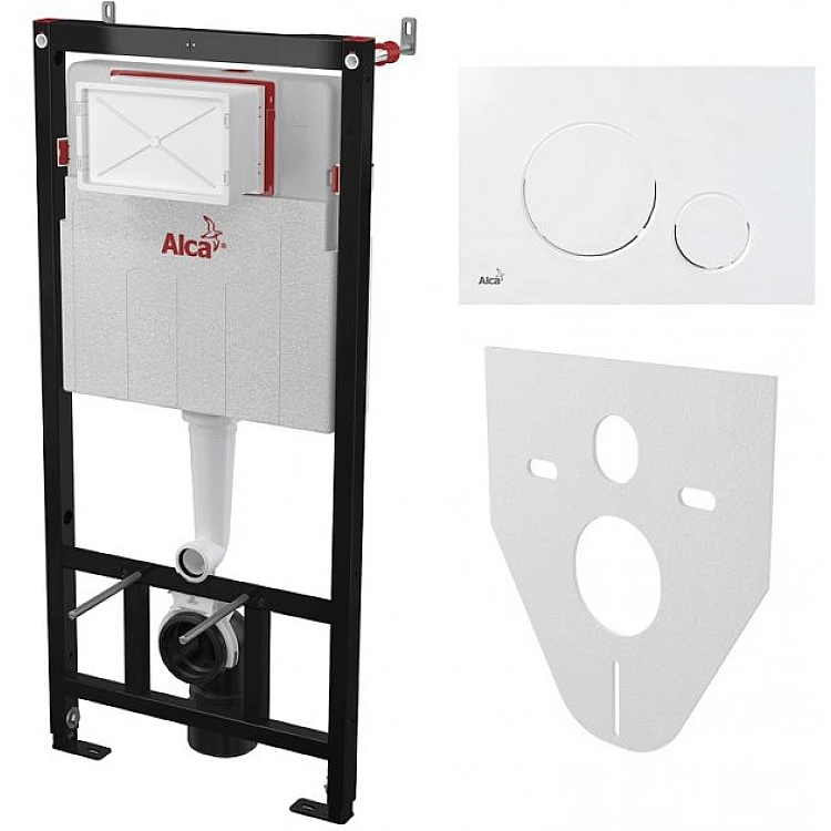 Описание товара - Инсталляция AlcaPlast 4в1 AM101/1120 с унитазом ROUND SMART с белой круглой кнопкой M670