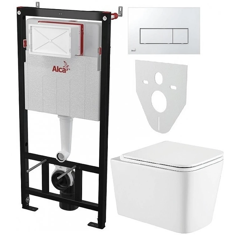 Описание товара - Инсталляция AlcaPlast 4в1 AM101/1120 с унитазом Kvadro с хромированной прямоугольной кнопкой